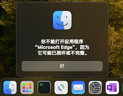 前一阵更新 macOS 到 Sonoma 14.0 版本,然后遇到一个问题,Microsoft Edge 浏览器每次自动更新后,都会出现「你不能打开应用程序,因为它可能已损坏或不完整」的错误,Docker 栏的应用图标也会发生变化,如下图所示: