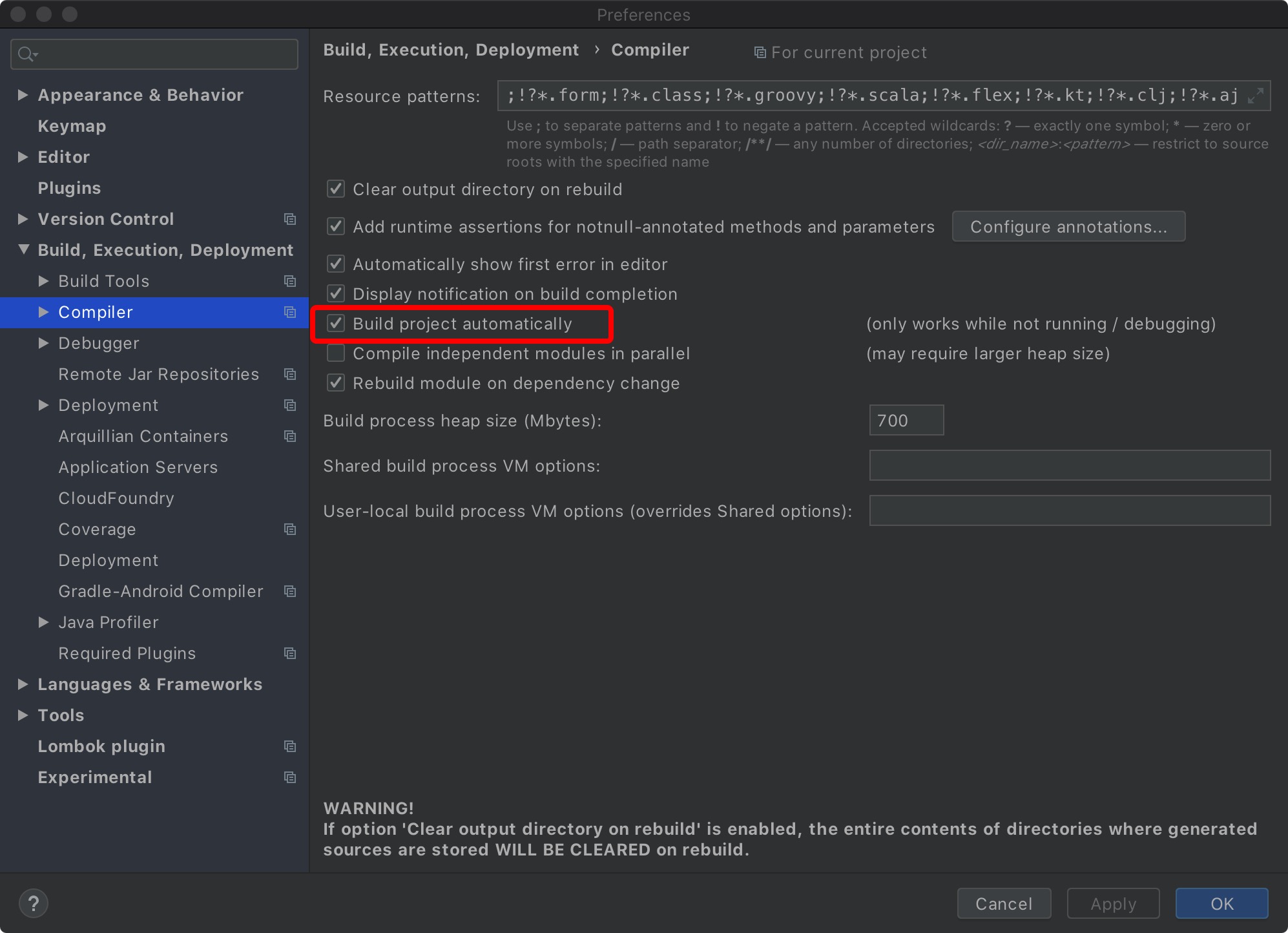 spring: freemarker: cache: false settings: template_update_delay: 0修改 IDEA 设置,开启 Build project automatically